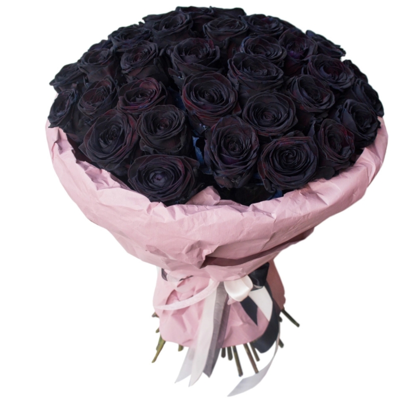 Букет состоит из 31 черная роза, крафт, атласная лента.