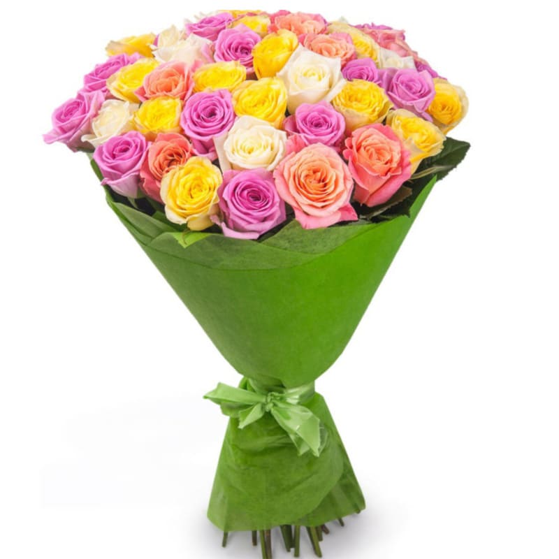 Букет состоит из MIX из 45 роз, красивая упаковка, атласная лента.