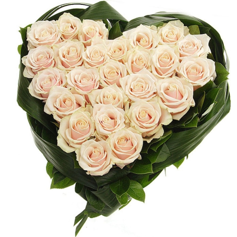 Сердце из 25 кремовых роз
