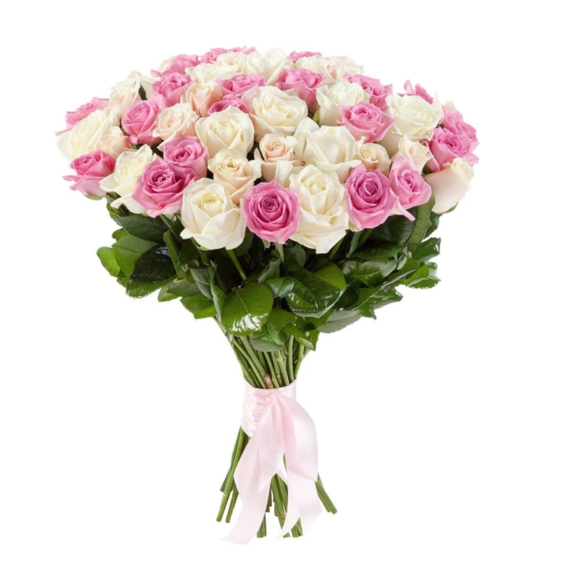 Букет из 55 белых и розовых роз