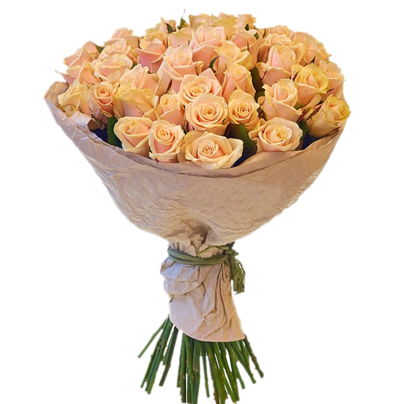 Букет из 45 кремовых роз в крафте